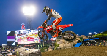 今季からの変更点としては、タイムスケジュールを早めたラウンドが増えること。例えばアナハイムでは、従来の19時から17時スタートに改められたが、これはアメリカ東部におけるテレビのプライムタイムに合わせるためだ。また、SMXチャンピオンを際立たせる演出として、ジェット・ローレンス(ホンダ)とヘイドン・ディーガン(ヤマハ)のナンバープレートには、イエローグリーン(蛍光色)の数字が採用されることになった。地色はパープルが基本だが、ポイントリーダーになるとレッドに変更。このSMXチャンピオンゼッケンは、スーパークロス、プロモトクロス、そしてスーパーモトクロス最終戦まで適用される。