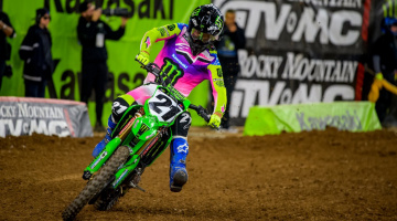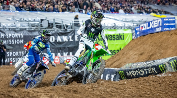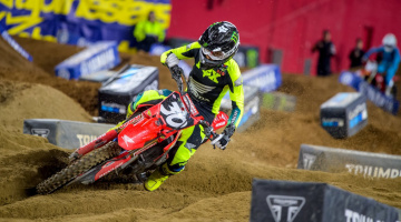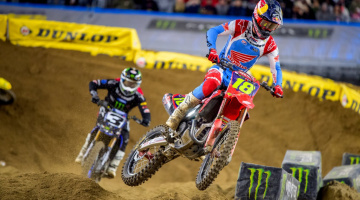 450SXのメインレース(20分+1周)は、ケン・ロクスン(スズキ)の好スタートで始まった。ホールショット賞を争ったジャスティン・クーパー(ヤマハ)や、アーロン・プレシンガー(KTM)の脱落により、ロクスンを追うセカンドグループは、アンダーソン、イーライ・トマック(ヤマハ)、クーパー・ウェブ(ヤマハ)に絞られた。やがてその後方には、スタート11位から挽回してきたジェット・ローレンス(ホンダ)、オープニング7位だったハンター・ローレンス(ホンダ)が迫る。