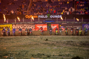 レース中盤には、チェイス・セクストン(KTM)が2位に浮上したが、転倒により1周ほどで後方に下がった。ラスト1周を告げるホワイトフラッグが振られたとき、プレシンガー、マケラス、ロクスン、セクストン、バーシアの順は大差のまま確定したと思われた。ところが、最終ラップでも随所でスタックが発生して上位が失速する。そんな惨状を尻目に、6位につけていたクーパー・ウェブ(ヤマハ)が、果敢なジャンプを続けて3位に躍進。プレシンガー、マケラス、ウェブが表彰台に上がる結果になった。