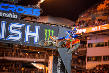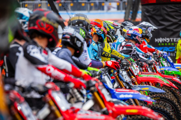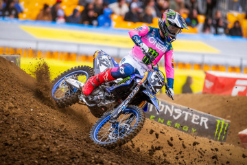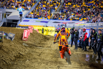 アクリシュア・スタジアム(旧称ハインツ・フィールド)において、初開催となったスーパークロス。改定版スケジュールによって14時すぎから行われた、クオリファイングセッションで最速タイムを刻んだのは、450SX=47秒276=チェイス・セクストン(KTM)、250SX=48秒507=RJ・ハンプシャー(ハスクバーナ)だった。