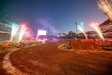 サンディエゴSXの会場、スナップドラゴン・スタジアムは、2022年にオープンしたばかりのフットボール用施設だ。1980~2014年までスーパークロス開催歴のある、クアルコム・スタジアム(旧称ジャック・マーフィー・スタジアム)の跡地に隣接していることもあり、ファンにとっては懐かしさを覚えるロケーションと言えるだろう。。