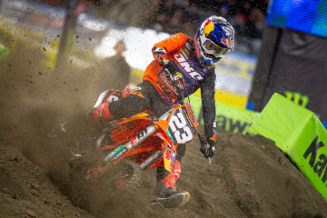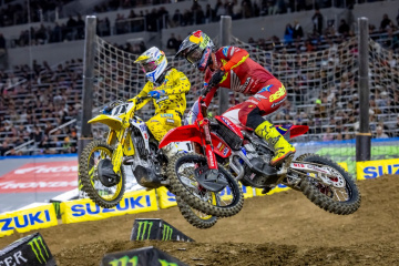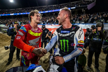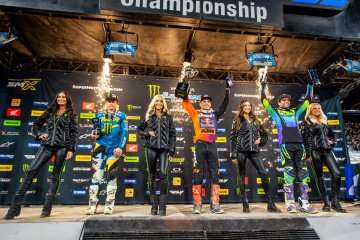 開幕戦アナハイムのポディアムには、セクストン、ロクスン、ジェイソン・アンダーソン(カワサキ)が登壇したが、今大会サンディエゴの顔ぶれは、トマック、J・ローレンス、ウェブと入れ替わった。混戦模様を暗示するリザルトとともに、トマックが1ポイント差で首位に立っている。