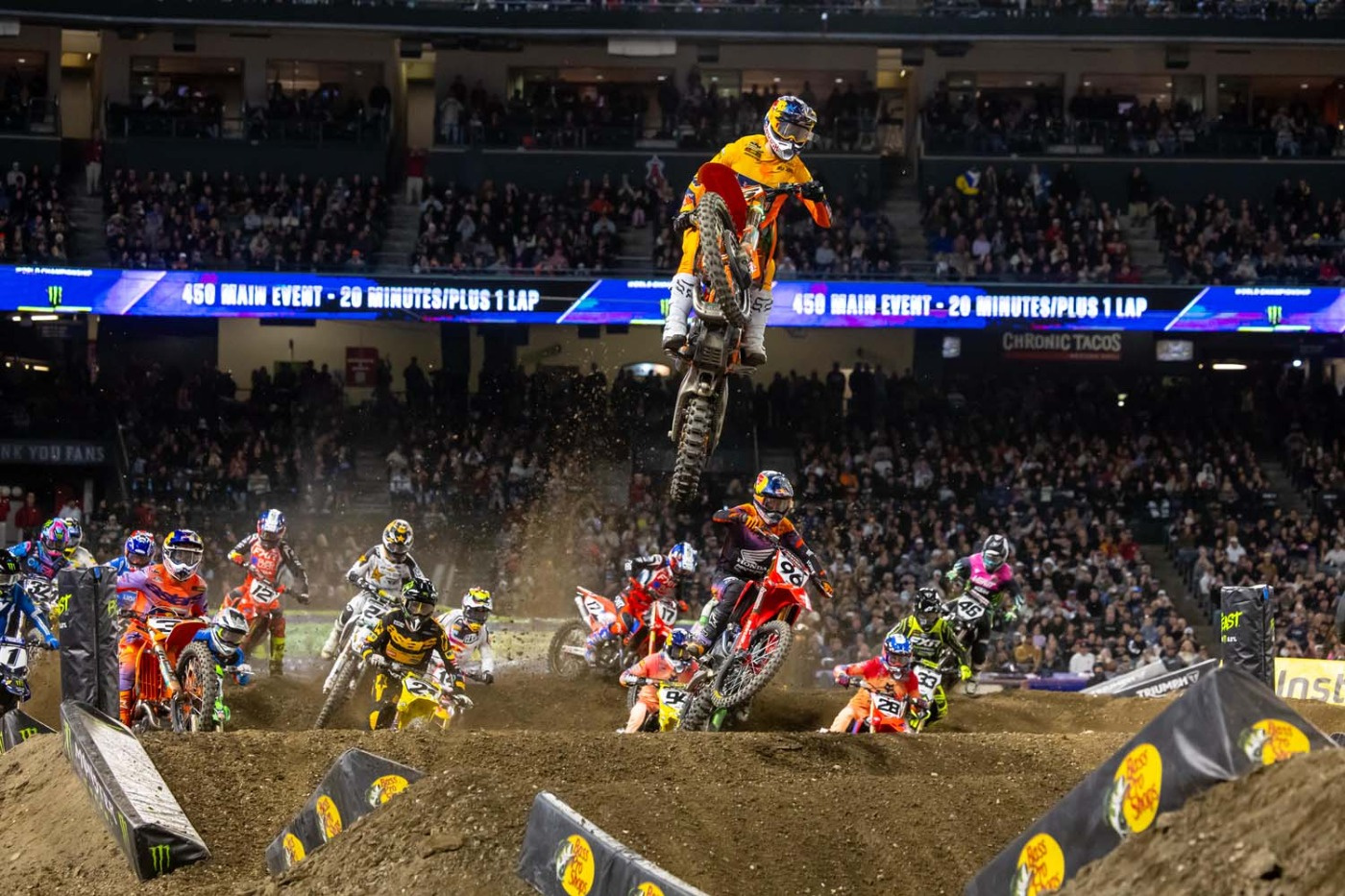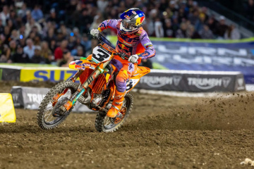 450SXのメインレース(20分+1周)では、マルコム・スチュワート(ハスクバーナ)とバーシアのクラッシュが発生したため、オープニングラップでレッドフラッグが振られた。リスタートではプラードがホールショットを獲ったが、すぐにトマックが前に出る。プラードの背後には、ハンター・ローレンス(ホンダ)、ケン・ロクスン(スズキ)、アンダーソンが続いた。