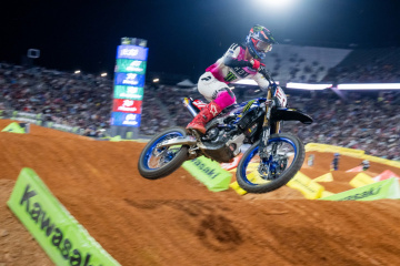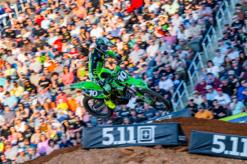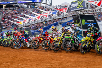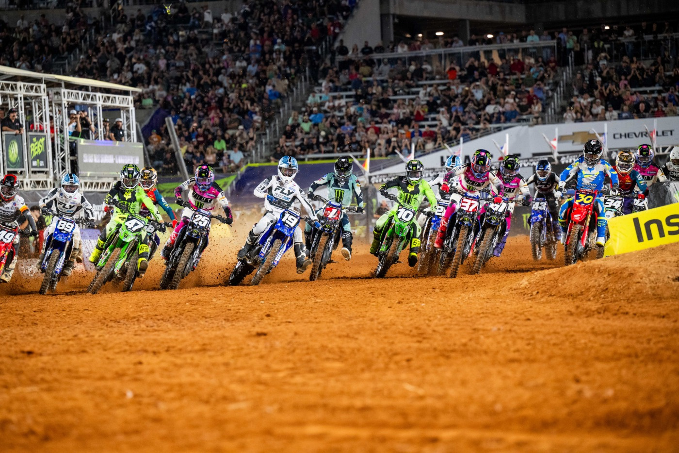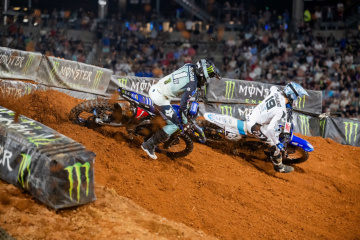 スーパークロス初開催から3年目となるバーミンハムだが、昨年はトリプルクラウン(3レース制)、今年は250SXがショーダウン(東西交流戦)というように、毎回異なるレースフォーマットが適用されている。会場のプロテクティブ・スタジアムは、2021年にオープンしたフットボール用競技場。隣接する複合施設、BJCC(バーミンハム・ジェファーソン・コンベンション・コンプレックス)を屋内パドックとして活用できる半面、コースはオープンエアなので荒天には弱い。