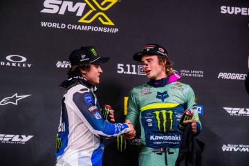 ハーフウェイポイントを過ぎると、ロクスンも交え三つ巴のデッドヒートが白熱。14周目にはトマックがウェブをかわしてリーダーとなった。終盤のハイライトは、スタート6位から挽回してきたハンター・ローレンス(ホンダ)の追撃。ラスト3周でロクスンに仕掛けたローレンスだったが、サンドコーナーで接触して両者転倒。ローレンスはジャスティン・クーパー(ヤマハ)に先行されながらも4位でレースに復帰したが、ロクスンは再始動に時間を費やし10位となった。