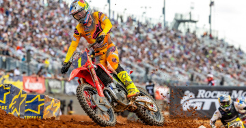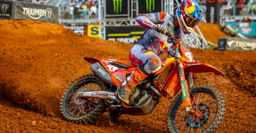 450SMXのヒート2では、ジャスティン・クーパー(ヤマハ)がホールショットを決め、トマック、J・ローレンス、セクストンが続いた。激しい競り合いに飲み込まれたクーパーは、徐々にポジションを失い、5周目には4位まで後退。トップ争いは、トマック、J・ローレンス、セクストンによる三つ巴となった。残り3分となった10周目に、J・ローレンスがトマックを攻略。フィニッシュまで逃げきり、オーバーオールウィナーとなった。