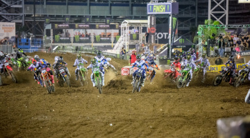 450SMXのヒート2では、左右に分かれたゲートから好スタートを切ったローレンス兄弟が、1-2フォーメーションでホールショットラインを通過した。その後ろに控えるトマックを含めたトップスリーが、総合優勝の行方を決める三つ巴のバトルを演じる。ハーフウェイポイントを過ぎるとトマックの勢いが衰え、やがてリードを広げたJ・ローレンスが逃げきり、パーフェクトウィンを収めた。