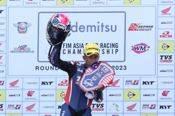 出光FIMアジアロードレース選手権第2戦のAsia Superbike 1000cc レース2で優勝を飾ったのはONEXOX BMW TKKR TEAMのMarkus Reiterbergerだった。ドイツ人ライダーのMarkusは、セパン・インターナショナル・サーキットを深く理解しており、レース1の勝利も実力と強さを強く物語っていた。同じくレース1で激しいバトルを見せたAzran、Zaqhwan、埜口の闘いにも注目が集まった。