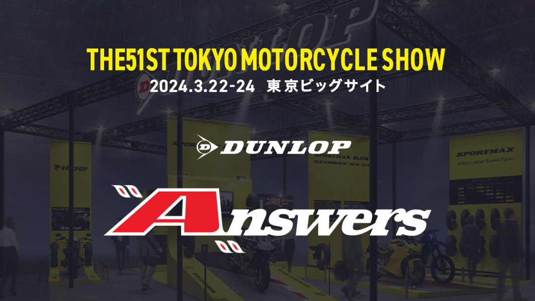 「DUNLOP Answers」をテーマに出展します。ダンロップの技術力の結晶である、モーターサイクルタイヤ。今回出展するブースでは、来場者の皆様が求めるタイヤの「熱く、しびれるような答え、DUNLOP Answers」を見つけることができます。24年2月に新発売したオールラウンドスポーツタイヤ「SPORTMAX Q5A」を中心としたSPORTMAXシリーズや、ダンロップにまつわるレース車両の展示を通じて、ダンロップの「技術力の高さ」と、モーターサイクルに必要不可欠な「ワクワク感」が感じられる出展を目指します。