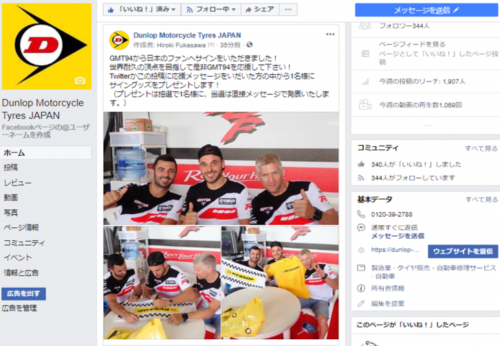 Facebook:https://www.facebook.com/Dunlop-Motorcycle-Tyres-JAPAN-1855260601200720/
