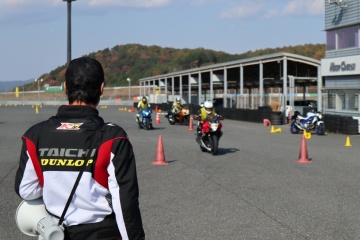 生徒のみなさんには基本的なライディングテクニックは勿論、体全身を使ってバイクを操作する技術を教えています。