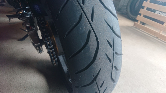 橋の継ぎ目などをバンクしたまま通過しても、タイヤのグリップ力と柔らかさでしっかりと食いついてくれて、リアが流れるような感覚がなくなったので安心感が増しました。