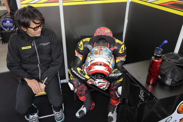 チームとしては、前日のレース1の振り返りをライダーと行い、レース後半が苦しかったのでそこでタイヤに合わせる車体のセットにしたのと、タイヤが持っていない性能を車体側でカバーするようなセッティングにしました。それでウォームアップ走行を行い、さらにレース2を走りました。