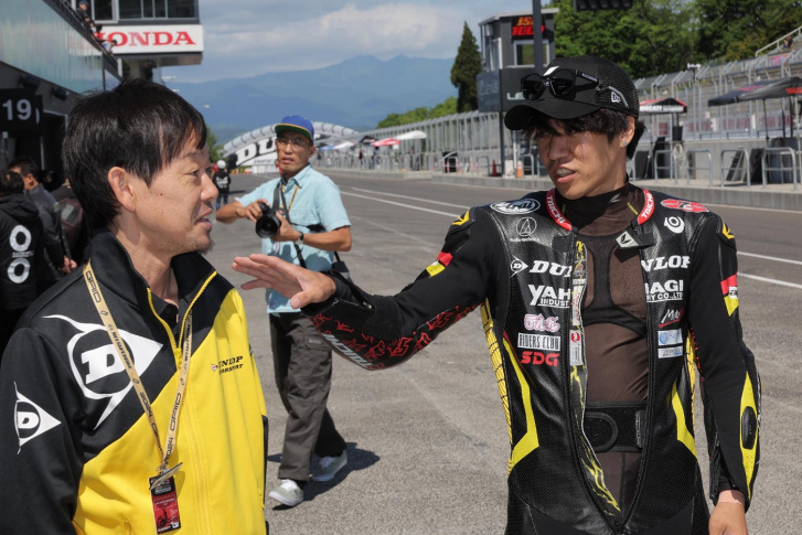 当然、ダンロップのエンジニアも新しいタイヤをどんどん造り、長島に乗ってもらいたいと思いますが、例えば今回のSUGOで言えば、本人はJ-GP3時代に走ってから、もう10年ちょっとSUGOを走っていない。そんな状態でいきなり新しいタイヤを履いてテストというのは、本人にとっても厳しいですよね。だから、ダンロップのエンジニアが自分たちがテストしたいことも我慢して、「最初の1本は身体慣らしに使ってください」と言ってもらえるようになった。それは大きいと感じています。本当に時間は限られているから、申し訳ないけどちょっと開発のラインから外れていそうな新しいスペックのタイヤは、自分がダンロップのエンジニアに説明して、別のタイヤを履いてテストすることをお願いすることもあります。でもそれも受け入れてもらえているので、そこは我々の仕事に対して理解してくれていると感謝ですね。そこが、さっき言った『お互いの信頼関係』を感じる部分です。