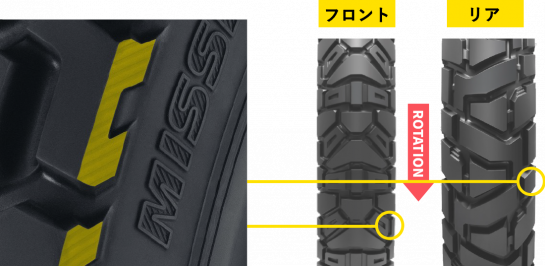 ダート路や岩場などタフな環境で威力を発揮する耐久性とオンロード性能を兼ね備えたアドベンチャー・タイヤ。