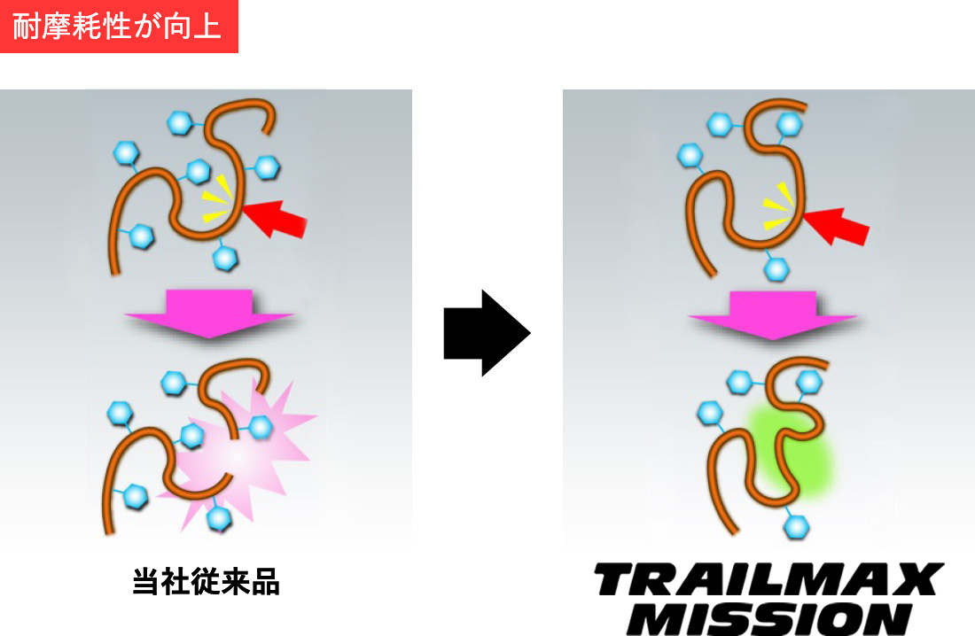 さらに優れた耐摩耗性で、ロングツーリングでも安心感のあるライフ性能を実現。