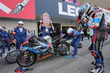 ダンロップ・ユーザーのエースチームは、目下世界耐久選手権でランキング4位につけるNo.37 BMW MOTORRAD WORLD ENDURANCE TEAM。ドイツ人のM・レイテルベルガー選手、フランス人のS・ジュントーリ、ウクライナ人のI・ミカルキクを擁するBMWファクトリーチームだ。昨年は6位入賞を果たしただけに、今年はトップ5を狙う。