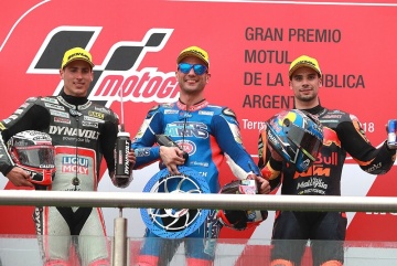 「難しいコンディションの中、いい仕事ができたと思う。序盤、バルダッサリ選手がパスしようとしたとき、ミスをして彼に接触してしまった。ラインを外れるとまだ少し濡れていたので、マシンのコントロールを失った。でも幸い、転倒はしなかった。これでトップ・グループと完全に離れてしまって、追いつこうとがんばった。パシーニ選手と最後まで戦えたので楽しかった。彼をオーバーテイクするために、すべて試しましたが、今日はできなかった」