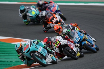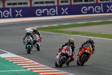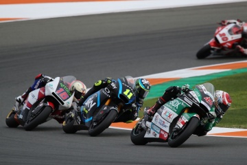 決勝レースのスタートが切られると、マルティン選手が好ダッシュ。後ろからT・ルティ選手(KALEX)、ナバーロ選手、B・ビンダー選手(KTM)などが続く。