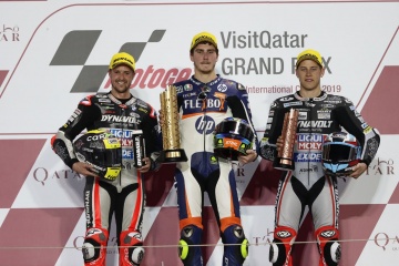 MotoGPクラスからMoto2クラスに戻ったルティ選手は、復帰戦で2位。シュロッター選手は3位となった。