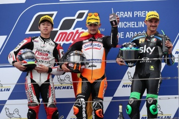 「初めて表彰台に立つことができて、最高の気分です。表彰台に立つことが、ルーキーイヤーの今年のひとつの目標でした。序盤の2、3周は、カネット選手についていこうとしたが、難しかった。その後は、2番手グループの先頭を走った。できるだけグループの前にいようとがんばった。前戦サンマリノでは、最後に他者の転倒に巻き込まれて表彰台を逃したので、その雪辱を果たすことができた。次戦のタイでもこの調子をキープしたい」