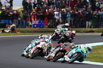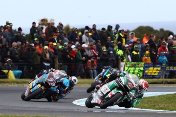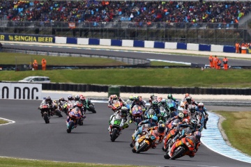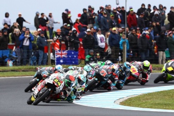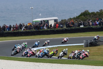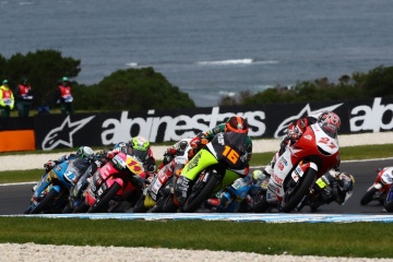 決勝レースがスタートするとビンダー選手が好ダッシュ。後ろからナバーロ選手、J・マルティン選手(KTM)、マルケス選手、T・ルティ選手(KALEX)などが続く。