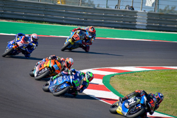 レース終盤、トップのフェルナンデス選手の9秒以上後方では、激しい2位争いが展開される。J・マシア選手(HONDA)、D・フォッジア選手(HONDA)も追いついて、ドッグ・ファイトを展開。マシア選手は残り4周で転倒してしまう。