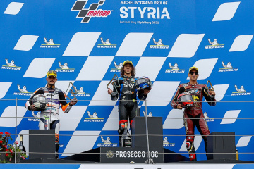 「ハーフ・ウェットのコンディションだったから、とても難しかった。スタートから調子はよかったが、ブレーキングで何回か滑って転倒しそうになった。それで、様子を見ていた。最後は、感触がよくなったので、3位をつかむことができた。次は、さらに上位を狙いたい」