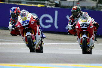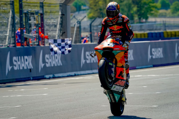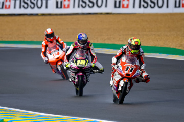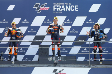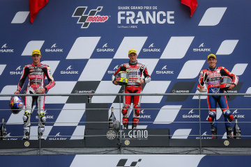 ガルシア選手はそのまま後続を押さえて、今季初優勝を達成。チェコ人ライダーのサラッチ選手が2位、R・ロッシ選手(KTM)3位で2人とも初の表彰台となった。