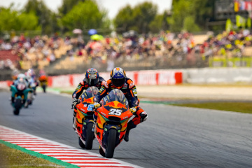 鳥羽海渡選手(KTM)13位、佐々木歩夢選手(KTM)14位、國井雄輝選手(HONDA)20位、山中琉聖選手(KTM)22位、松山拓磨選手(HONDA)は27位につける。