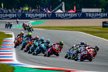 1周目にロペス選手がトップに上がり、引き離しにかかる。後ろからディクソン選手、アレナス選手、M・シュロッター選手(KALEX)が続く。