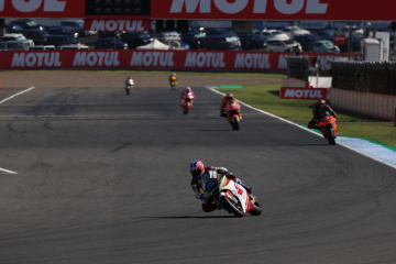 予選前半からトップに立っていたA・カネット選手(KALEX)が、再スタート後もタイムを更新してポール・ポジションを獲得した。