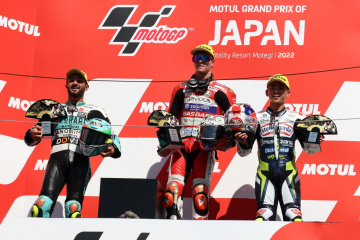 「地元で優勝できたなんて、最高の気持ちです。13番手からで厳しかったが、スタートがうまくいった。それから前のライダーが転倒して、トップ争いをすることになった。2019年のときに、初めて日本GPを経験していたが、あのときは緊張していた。今回は、集中して走りベストを尽くすことができた。日本のファンの前で優勝できて本当にうれしいです。今回は、ドライでの走行が少なくて、セッティングが難しかったが、レースをうまくマネージすることができた」