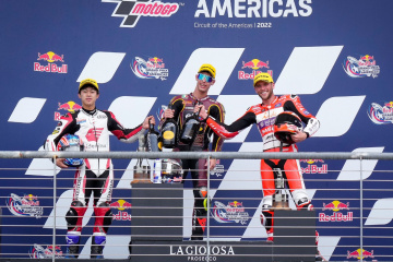 首位のC・ヴィエッティ選手(KALEX)2位、A・カネット(KALEX)が3位に続く。
