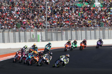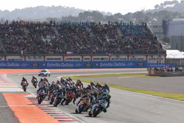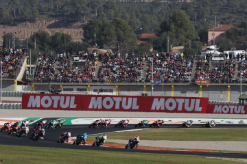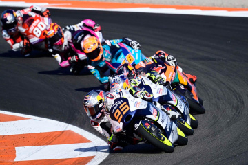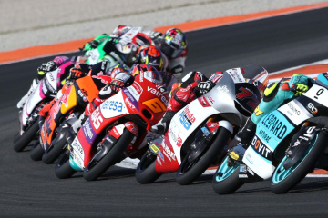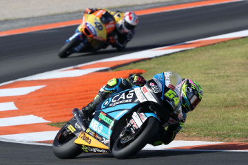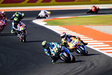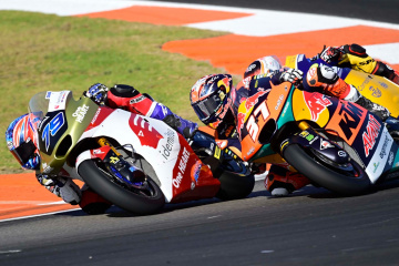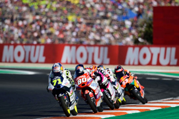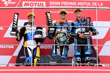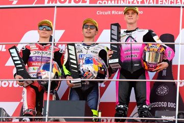 2023年シーズンはいよいよ最終戦を迎えた。今年の最終戦の舞台も、スペインのバレンシア。肌寒い中で、走行が開始された。土曜日の予選では、A・カネット選手(KALEX)がポール・ポジションを獲得。「ホームGPでポールを取れてうれしい。決勝へ向けて自信あるよ。明日は優勝目指してベストを尽くす」とカネット選手。続いて、F・アルゲダー選手(BOSCOSCURO)2位、M・ラミレス選手(KALEX)が3番手に続く。初タイトルを獲得したP・アコスタ選手(KALEX)選手6位2列目。小椋藍選手(KALEX)17位6列目につけた。「Q2で33秒台にタイムを入れることができなかった。明日は、このチームで走る最後のレースなので、限界までプッシュして、いい形で決勝を終えたいです」と小椋選手。羽田大河選手(KALEX)29位、野左根航汰選手(KALEX)31位となる。