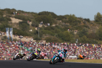 決勝レースはアルゲダー選手の好ダッシュで始まった。後ろからカネット選手、ラミレス選手、J・ディクソン選手(KALEX)などが続く。アルゲダー選手がレースをリード。カネット選手が2位で続き、ラミレス選手、ディクソン選手、A・ロペス選手(BOSCOSCURO)などが3位争いを展開していく。アルゲダー選手は着実にリードを広げていき、中盤には4秒近いアドバンテージを築く。単独2位はカネット選手。3位争いグループでは、ロペス選手が先行するが、ラミレス選手がピタリと後ろにつけていく。