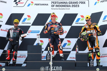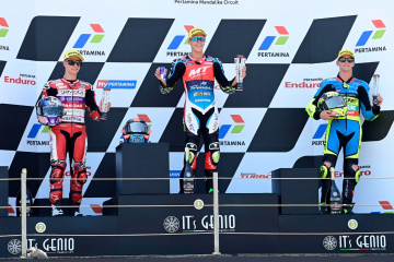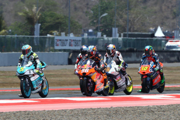 日本グランプリから2週間後、東南アジアのインドネシアで第15戦を迎えた。ドライ・コンディションで行われた予選では、A・カネット(KALEX)がポール・ポジション。M・ゴンザレス選手(KALEX)、F・サラッチ選手(KALEX)が2、3位に続く。首位のP・アコスタ選手(KALEX)は4位。小椋藍選手(KALEX)はFP3で転倒するなど調子が上がらず19位7列目となる。羽田大河選手(KALEX)は24位、野左根航汰選手は29位に並んだ。