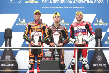 「レース中、ヘルメットのバイザーが少し曇ってしまって大変だった。いつもはノーズガードを付けているけど、温かいところだから必要ないと思った。間違いだったね。走るのは難しかったから表彰台で終われてうれしい。娘が生まれたばかで、表彰台で二重の喜びです」
