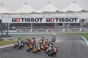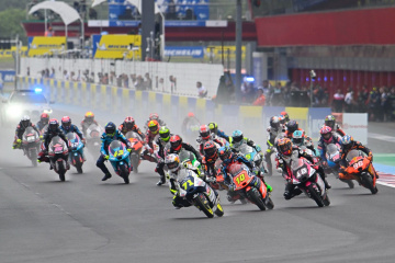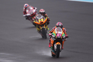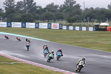 決勝レースはレイン・コンディションとなる。Moto2クラスは、ウェットでの走行がまったくなかったことから、周回数は14周に縮小された。