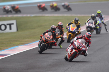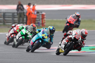 決勝レースはカネット選手のホール・ショットから始まった。後ろから、J・ディクソン選手(KALEX)、ロペス選手、予選8位のT・アルボリーノ選手(KALEX)などが続く。
