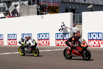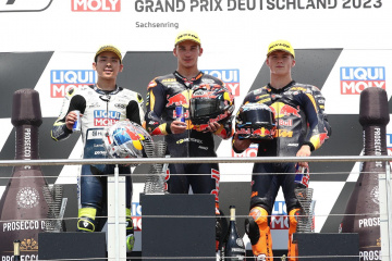 続いて、首位のT・アルボリーノ選手(KALEX)が2位、J・ディクソン選手(KALEX)が3位に続く。